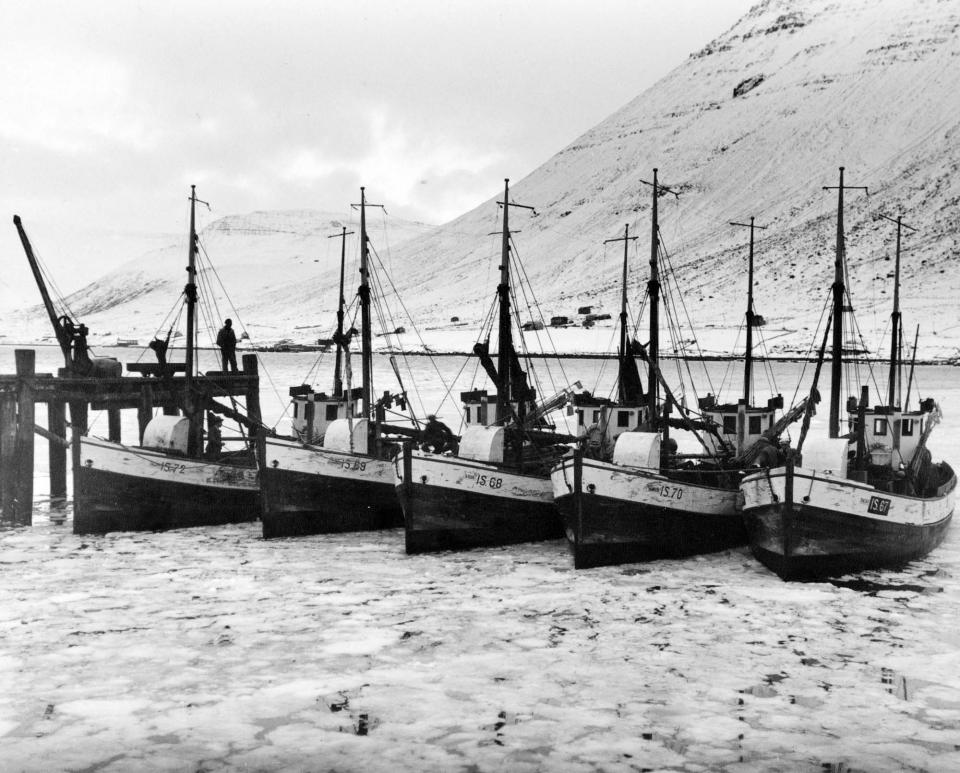 Das erste Kühlhaus in den Westfjorden baute 1896 das Handelshaus Ásgeirsverslun im Ortsteil Neðstakaupstaður in Ísafjörður. Das Eis dafür wurde im Winter dem inneren Teil des Fjordes entnommen und auf Schlitten ins Kühlhaus gezogen. 1928 ersetzte die Kühlhausgesellschaft Íshúsfélagið Bolungarvíkur das Eis durch eine Kältemaschine, aber schon ab dem folgenden Jahr wurden viele Kühlhäuser der Region, wie in Ísafjörður und in Súðavík, mit Gefriergeräten aufgerüstet, so dass in diesen Gefrierhäusern der Fisch tiefgefroren werden konnte.