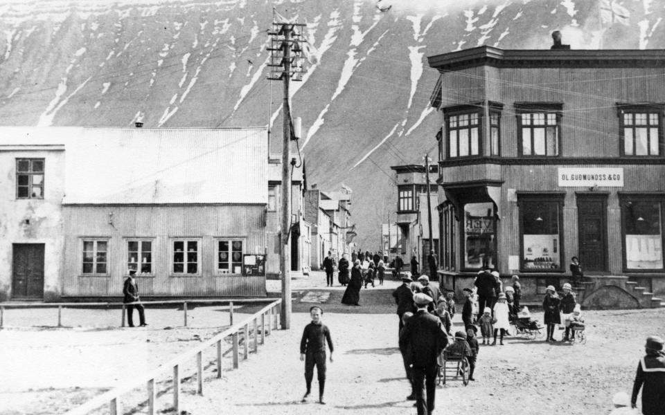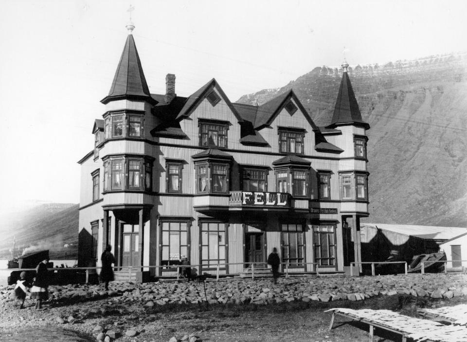 Der Schreiner Halldór Jónsson war der erste Einwohner von Ísafjörður, der sich im Stadtteil Norðurtangi ein Haus baute, das nicht auf dem Grund der Kaufleute stand. Er hatte wahrscheinlich sein Handwerk in Dänemark gelernt. 1831 erhielt er die amtliche Erlaubnis, sich in Ísafjörður niederzulassen und seinen Beruf auszuüben. Als die Stadt nach 1860 zu wachsen begann, kamen auch immer mehr Zimmerer und Schreiner. Die Holzhäuser waren anfangs recht schlicht, wurden aber mit der Zeit größer und aufwendiger, mit Dachgeschoß und Fensterstürzen. Nach 1880 gelangte das Wellblech von Schottland nach Island, mit dem schon sehr bald alle Holzhäuser verkleidet wurden. Später importierten die Wohlhabenderen stattliche Holzhäuser bereits vorgefertigt aus Norwegen, sogenannte Kataloghäuser, die man nach Preisliste bestellen konnte. Schließlich errichteten auch die einheimischen Baumeister schöne große Häuser, die immer noch den Ort prägen, erst aus Holz, später aus Beton.
